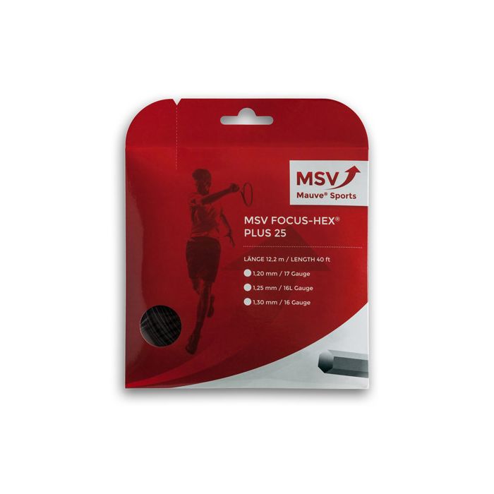 De MSV Focus Hex Plus 25 is een zeer soepele co-polyester mono filament snaar, die 25% elastischer is dan de bekende MSV Focus-HEX. Dit is de nieuwste ontwikkeling van dit type snaren! MSV Focus-HEX PLUS 25 is een duurzame co-polyester snaar die wezenlijk meer power geeft zonder daarbij te moeten inboeten aan controle. De zeskantige snaar zorgt ook voor meer grip op de bal en verbeterde spin. De snaar verschuift nauwelijks in het racket. Ideale snaar voor de agressieve, aanvallende speler, die graag meer power wil hebben.